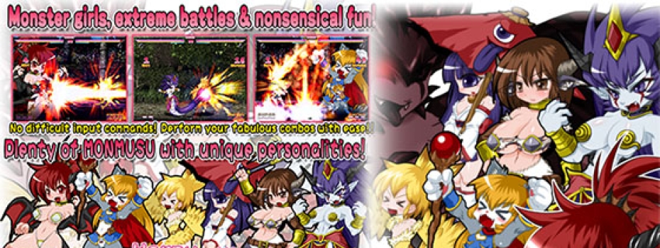 Экшн-игра с девушками-монстрами, экстремальными сражениями и бессмысленным весельем! Полудракон, волшебная девушка-кошка-оборотень, гарпия, одноглазый, девушка-минотавр-воин, темная ламия-волшебница, темный эльф-футанари, укротитель зверей... и многое другое!