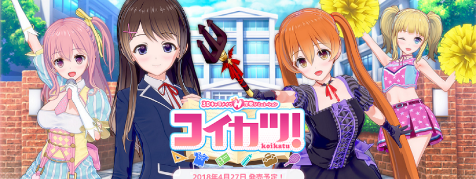 Коикату! (コ イ カ ツ! или Koikatsu!) - это эроге для создания 2D-персонажей Cellshaded от Illusion. Вы играете за одинокого мальчика, которого только что перевели в школу только для девочек с целью... приучить их к другим одноклассникам мужского пола. Бродите по карте, подглядывайте за девушками, если у вас есть возможность, разговаривайте с ними, чтобы завоевать их благосклонность и инициировать «события», которые раскроют их истории. Есть «именованные» героини с предустановленной предысторией и созданные игроками персонажи с большим количеством (30) типов личности на выбор.